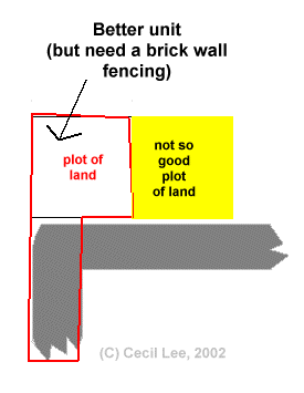 4. On the other hand, if your plot of land (from a top-down) view looks like a knife with handle, this will be to your advantage as you can take advantage of the Feng Shui to reap `wealth' at the expense of your neighbour.