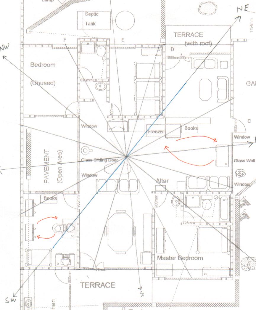 After reading your article: Interpreting Intangible Forces and considering the breadwinner's Gua number is 8, I made new arrangements of my furnitures. In living room, I switched Freezer & Refrigerator to desk's position, and vise versa (NE and E sectors). In my room (SW sector), I switched computer desk and wardobe. Please see before.jpg for the previous positions. I did it because the electronics appliances were on NE and SW lines. You may see the current positions at after.jpg.